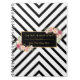 Caderno Espiral Listras brancas pretas abstratas e quadro Dourado