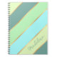 Caderno divertido para mulheres ou meninas. Com um lindo padrão de listras contemporâneas femininas em azul teal, aqua turquesa, menta claro, amarelo pastel e verde, com espaço para personalizar com o nome, monograma ou iniciais de sua escolha. Desenho ornamentado, moderno e caprichoso para a fashionista artística elegante ou diva da moda artística, quem dita as tendências ou simplesmente amante do estilo de arte listrado retrô.