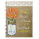 Uma adição bonita a seu chá de panela. A serapilheira e o laço olham o fundo (da imagem), com um frasco de pedreiro enchido com as imagens impressas alaranjadas dos estrados…, nao reais. As iniciais monogrammed dos noivos e seus nome e data do chá de casamento são personalizados neste do "livro de hóspedes bonito do chá de panela país". Deixe seus convidados escrever algo especial neste guestbook bonito do chá de panela. Aperfeiçoe mantendo um registro de presentes do chá de panela recebido. De "o livro de hóspedes do frasco pedreiro e do chá de panela das margaridas" faz uma lembrança amada para noiva-à-estar. Este livro de hóspedes bonito do chá de panela está disponível em outras cores e estilo-ao longo com dos produtos de harmonização, visita por favor minha loja "a princesa de Hungarican" em www.zazzle.com/hungaricanprincess*. Olhe em minha categoria do departamento do "casamento". Parabéns!