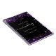 Um caderno de convidado amigável. Um fundo preto na moda com faíscas roxas. Personalize e adicione seus nomes e data de casamento.
