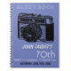 Livro de Convidados para festa de aniversário personalizável com uma ilustração retrô de uma câmera (modelo n°2). Você pode facilmente alterar o texto (fonte, tamanho, cor e posição) e a cor do plano de fundo clicando no botão personalizar ou personalizar. Disponível no cobrir do duro. Matching Birthday salve a data (cartão postal), a placa de papel de aniversário e o guardanapo de papel.