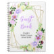 Este lindo e elegante livro de visitas de chuveiro de noiva apresenta flores de aquarela roxas e folhagem em uma moldura geométrica dourada. O texto combina fontes manuscritas e serifadas para um visual moderno e sofisticado. É perfeito para um chuveiro de noiva rústico de primavera.