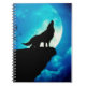 Caderno Espiral Lobo em silhueta uivando até a lua de cheio
