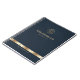 Este sofisticado design de cobrir para notebook apresenta um fundo azul profissional e profundo, acentuado com detalhes elegantes em ouro. O logotipo personalizado e o nome da empresa são exibidos de forma destacada em um tom ouro rico no topo, enquanto uma banda em ouro horizontal impressionante perto da parte inferior destaca sutilmente o endereço do site. Esse design incorpora uma estética luxuosa e ramificada, perfeita para fazer de uma afirmação refinada.