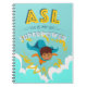 Este gráfico vibrante e inspirador apresenta um jovem super-herói, retratado voando pelo céu, exalando alegria e confiança. Estampado com a poderosa mensagem "ASL é meu SUPERPODER", este design celebra a Língua Americana de Sinais como uma habilidade única e capacitadora. O cenário apresenta um céu azul claro e brilhante com explosões dinâmicas amarelas e brancas, enfatizando o tema do super-herói. Esta ilustração serve como uma representação edificante das habilidades e orgulho dentro da comunidade surda e com deficiência auditiva, encorajando os espectadores a reconhecer a ASL como uma ferramenta formidável e uma força.