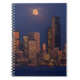 Caderno Espiral Lua cheia que aumenta sobre a skyline do centro de