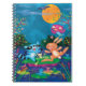 Artista: O Racoon de Elisa Chavarri | e a dança do coelho e do sapo e da coruja na lagoa na noite com um outono grande moon acima deles no céu