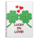 Sorte no amor. Desenhos de trevas de quatro folhas com formas cardíacas flutuando sobre elas.