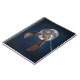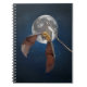 Um caderno espiral com um morcego fofo pendurado em frente a uma lua de cheio numa noite estrelada.