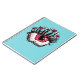 Macabre notebook com uma ilustração digital que mostra um olho vermelho assustador com pestanas que têm pestanas próprias e terminam em flores vermelhas e cinzas sobre fundo azul alegre. Quando, por vezes, os vossos olhos estão tão tensos que têm a certeza de que irão derreter nos próximos três segundos. Esta design psíquica estranha é só para você se você gosta de cores brilhantes e arte estranha.