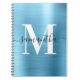 Crie seu próprio nome personalizado feminino e notebook de vazio monograma para ela. Filme de papel fino metálico azul-bebê shimmer colorido de arte digital. As cores preto e branco no monograma contemporâneo com design de caligrafia elegante com estilo de assinatura podem ser personalizadas.