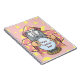 Velha feiticeiro com capa rosa e bola mágica de cristal. Use a foto facial para personalizar. Texto personalizado.