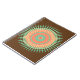 Um design de mandala inspirado pela cultura indiana ou marroquina. Este design apresenta cores de pêssego/laranja, verde-menta contra um fundo personalizável. Sereno e pacífico e cheio de energia paralela.