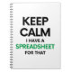 Caderno Espiral Mantenha a calma. Tenho uma folha de cálculo para