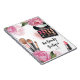 Repleto de tons vibrantes e flores caprichosas, esta impressão é um banquete visual perfeito para artistas de maquiagem, blogueiros de beleza, influenciadores e qualquer pessoa que busque um toque de elegância floral colorida com um toque de glamour. Apresenta peônias rosa brilhante, paleta de maquiagem, pincéis de maquiagem e batom. Você pode personalizar todo o texto. Caderno de Artista de Maquiagem Floral Aquarela de Cosméticos