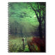 Notebook com a pintura de John Atkinson Grimshaw A Lua Notebook (1880). Uma lua assombrosa enche o céu noturno da Inglaterra vitoriana como uma mulher numa rua com árvores. Na frente dela está um prédio iluminado. Um presente excelente para fãs do Romantismo e da Inglaterra vitoriana.