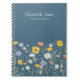 Caderno de notas florais colorido e caprichoso com flores de aquarela de papoula, flores de margarida laranja branca azul com acentos de verde em fundo de textura azul. Adicione nome ou texto personalizado. Este caderno de flores de aquarela será um acessório feminino perfeito para o seu escritório.