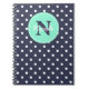 Tome notas neste adorável notebook de bolinhas de Marinho personalizado com seu nome e nome iniciais.