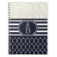 Marinho Náutico e Diário Notebook Elegante de Praia Branco. Personalize a frente com ou sem texto.