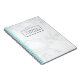 Notebook moderno com fundo branco sujo e cinza marble com sotaque azul aqua. Personalizou este bloco de notas adicionando o seu nome ou outros textos.