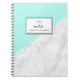 Na moda e notebook moderno com fundo de mármore falso com sotaque azul aqua. Personalize este notebook adicionando seus próprios detalhes. Outras cores estão disponíveis.