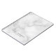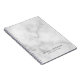 O notebook profissional apresenta o nome personalizado e o texto no estilo de fonte de serif clássico da cinza no fundo de mármore branco.