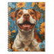 Caderno Espiral Marrom e Cachorro Branco e Flores