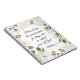 Caderno de citação inspiradora cristã, diário retrata um design floral simples com frutas vermelhas e brancas e folhagens. Apresenta uma parte das Beatitudes, o amado ensinamento de Jesus no Sermão da Montanha, versículo da Bíblia Mateus 5:9, "Bem-aventurados os pacificadores, pois serão chamados filhos de Deus."