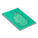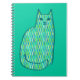 Notebook com um design de gato retrô moderno do século Médio, em um padrão de fita abstrato - horta, verde limão, aqua e turquesa, esboçado em negros, sobre um fundo verde/verde-pavão médio
