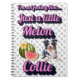 Este hilário notebook apresenta uma melancia e uma colônia, com o texto "Eu não estou me sentindo azul, só um pouco de melão". Perfeito para todos com senso de humor e que gostam de cachorros.