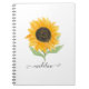 Caderno Espiral Minimal Rustic Sunflower Personalized Name Script