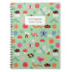 This sweet mint notebook features a playful pattern of beetles, bees, butterflies, and flowers. Personalize it with your name for a charming everyday stationery essential.