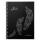 Esboço da ilustração da arte da queda das penas na luz - cinza no preto em um caderno personalizado.