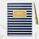 Trendy, padrão moderno de listras em azul e branco marinho com um nome personalizado ouro modelo.