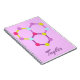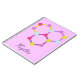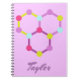 Esse caderno colorido, modelo molecular, apresenta um fundo roxo claro com moléculas formadas por átomos coloridos. Com o seu nome escrito por baixo em fonte roxa divertida, personalize o seu hoje! Clipart: MUJKA https://www.etsy.com/shop/MUJKA
