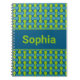 Caderno Espiral Modern Retro Link Pattern in Blue and Green