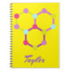 Essas moléculas modernas amarelas apresentam um fundo amarelo-claro com moléculas formadas por átomos coloridos. Com o seu nome escrito por baixo em fonte roxa divertida, personalize o seu hoje! Clipart: MUJKA https://www.etsy.com/shop/MUJKA