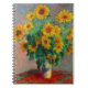 Notebook com Buquê de pintura a óleo de girassóis de Claude Monet (1881). Lindos girassóis num vaso azul sobre uma mesa vermelha. Um presente de excelente para fãs do impressionismo e da arte francesa.