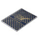 Um presente de casamento elegante para recém-casados, com seu apelido monograma como carta de caligrafia, seus primeiros nomes e a data do casamento. O tema é marinho azul com um padrão de casca de ouro estilo de deco.