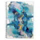 Adicione seu nome ou texto a este abstrato azul e design de lavagem de água com álcool dourado neste diário de notebook.