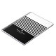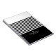 Este lindo notebook espiral preto e branco com listras apresenta um coração branco sobre um fundo preto escuro.