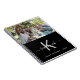 Um fundo preto chic. Personalize e adicione sua própria foto, um nome, uma letra monográfica e um texto. O nome é escrito em branco com um grande estilo escrito à mão com letras grandes e manuscritas com baloiços. A letra do monograma na cinza. Para manter as hastes apenas apague o nome da amostra, deixe os espaços ou emoji em frente e depois do nome