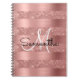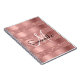 Tendy rosa dourchic monograma notebook. Design de folhas de folha falsa em ouro rosa e tiras de cerâmica e um monograma.