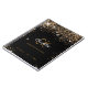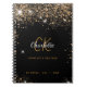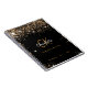 Um fundo preto, decorado com poeira falsa dourada. Personalize e adicione suas iniciais de monograma, nome próprio, nome do cheio e um título. Ouro e letras brancas.