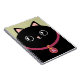 Cara preta bonito do gatinho do kawaii com os olhos brilhantes pretos grandes. Este gato bonito tem um colar e um Tag vermelhos nele onde está um lugar para o monograma conhecido feito sob encomenda. Aperfeiçoe para miúdos.