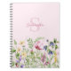 Caderno Espiral Monograma Cor-de-Rosa Flor Silvestre Personalizada