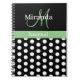 Caderno Espiral Monograma da Bolinhas branca verde preta