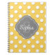 Caderno Espiral Monograma de Cinza de Padrão de Bolinhas Amarelo