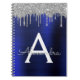Caderno Espiral Monograma de Metal Brilhante Azul Naval Prateado