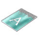 Caderno Espiral com Monograma de Nome e Inicial em Metal Escovado com Brilho Metálico Falso Azul Água Teal Prata e Brilho. Isso torna o presente perfeito para o aniversário de 16 anos, casamento, chá de noiva, aniversário de casamento, chá de bebê ou festa de despedida de solteira para alguém que ama luxo e estilos chiques e glamorosos.